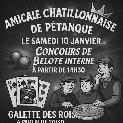 Venez passer un moment convivial le samedi 10 janvier avec un concours de belote interne a 14h30 et la dégustation de la galette à 17h30.