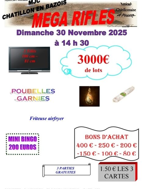 Nous vous attendons nombreux à nos Rifles du 30 novembre pour passer un moment convivial et nous l’espérons pour vous, chanceux !